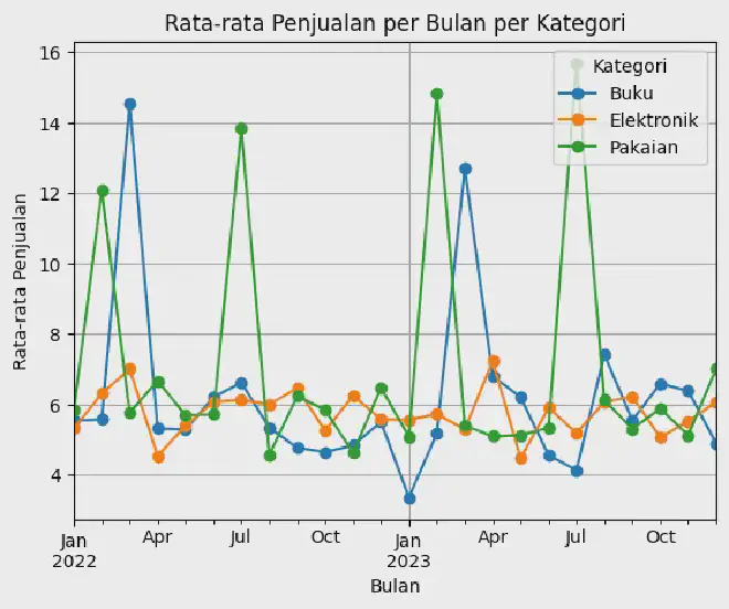 # Visualisasi rata-rata penjualan per bulan per kategori
